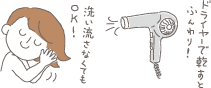 後は、軽く、かけ湯程度に流し、柔らかいタオルで押え拭きします。