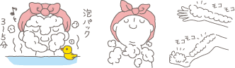 一度目はなで洗い。軽く流し、二度目はたっぷり泡パックで善玉菌を応援。